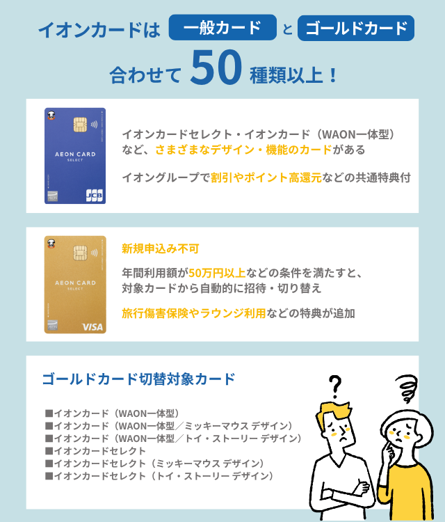 イオンカードには、一般カードとゴールドカードを合わせて50種類以上もある。