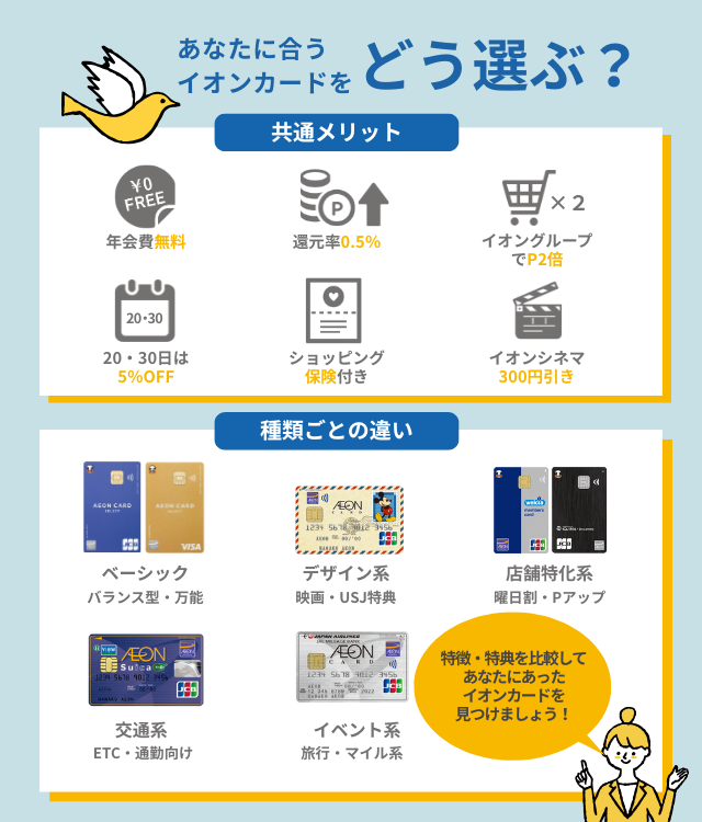 しかし、イオンカードには50種類以上のラインナップがあり、どれを選べばよいか迷ってしまうだろう。