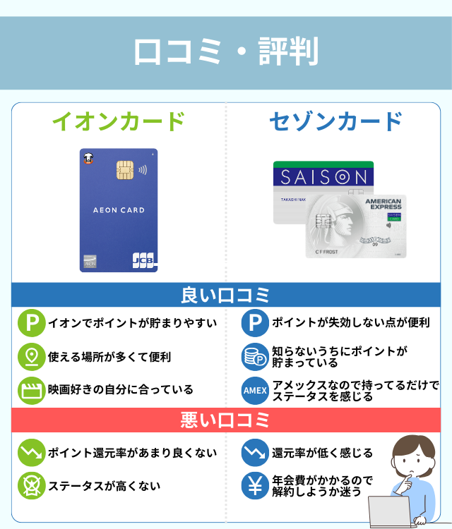 ここからは、イオンカードとセゾンカードの口コミ・評判を紹介する。