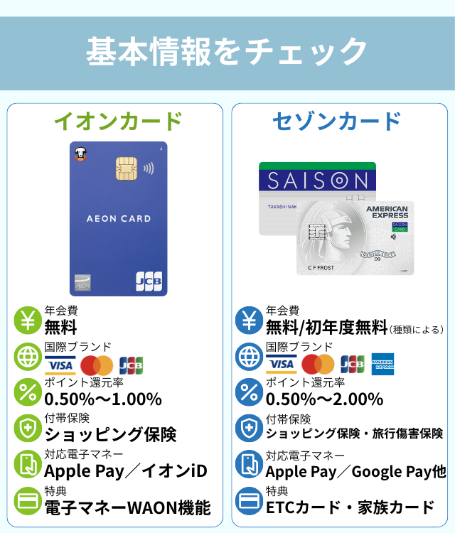 まずは、イオンカードとセゾンカードの基本情報を見ていく。