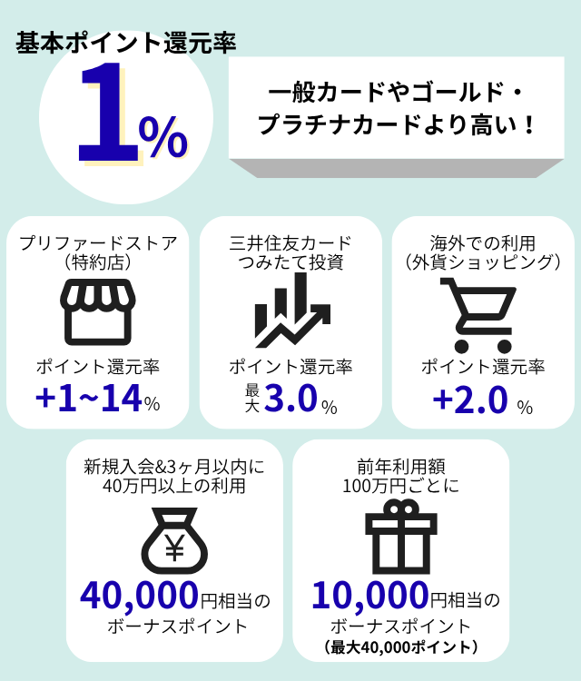 三井住友カード プラチナプリファードは基本のポイント還元率が1%と高い。