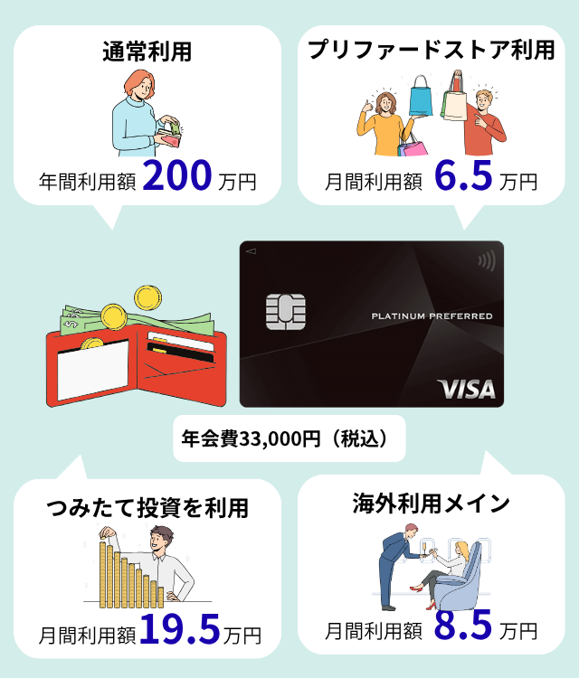 年間利用額114万円程度(+つみたて投資年間120万円) - 海外利用メインの場合