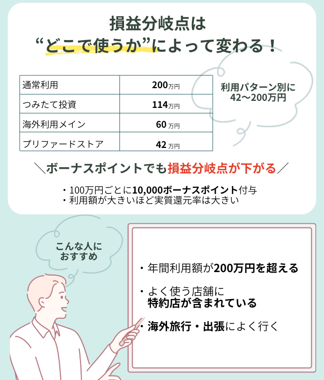 通常利用(特約店利用・海外利用・つみたて投資利用なし)の損益分岐点